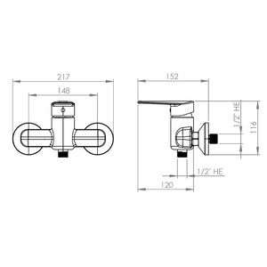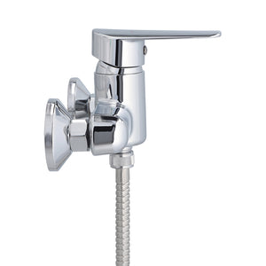 Manilla con giro en 900 que permite mezclar la temperatura del agua. CONEXIÓN Por 2 excéntricas S G 1/2". TIPO DE CIERRE Cartucho Cerámico 35 mm. MATERIAL Polímero de Alta Resistencia (ABS). CONSUMO «12 1/min a 3 bar. NORMATIVA Cumple con norma Chilena Nch 700-2011. INCLUYE 2 Excéntricas, 2 campanas, flexible 1,50 m, maneral 1 función, soporte fijo de 2 posiciones.
