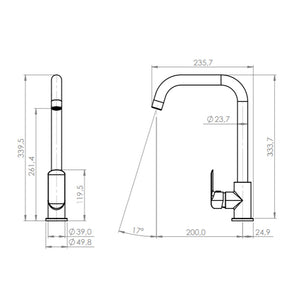 Manilla con giro en 900 que permite regular la temperatura del agua.