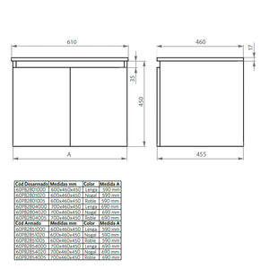 Mueble de Baño Completo Ermes Lenga con sobre cubierta rectangular 80x46 cm