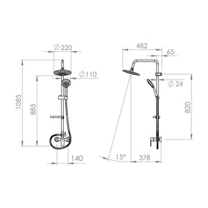 FUNCIONAMIENTO Columna de ducha con altura regulable y plato de 22 cm. de diámetro.