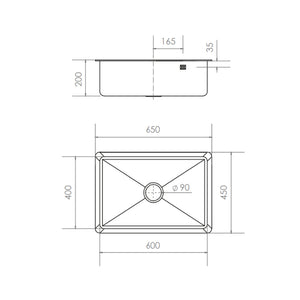 DESCRIPCIÓN Lavaplatos para instalar bajo la cubierta con desagüe, sifón y rebalse.