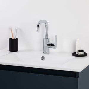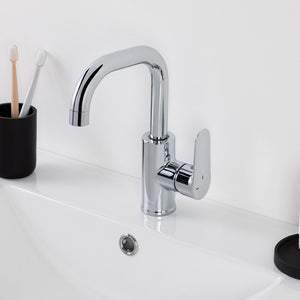 FUNCIONAMIENTO Cartucho cerámico con apertura en frío que permite ahorro de energía. La manilla cuenta con giro en 90° que permite regular la temperatura del agua.