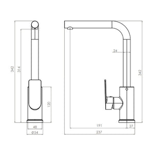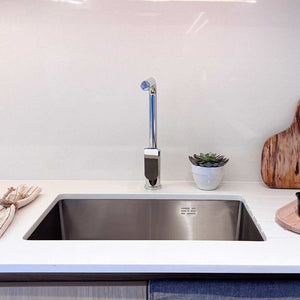 La manilla cuenta con giro en 90° que permite regular la temperatura del agua.