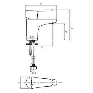 Manilla con giro en 90° que permite mezclar la temperatura del agua.