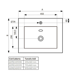 Desagüe Lavatorio de 1. 1/4” con rebalse.