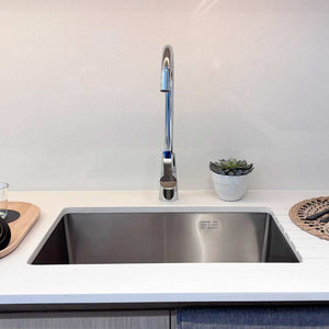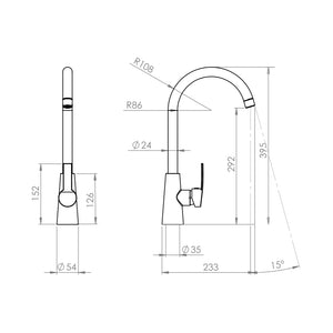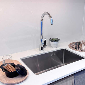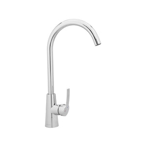 Manilla con giro en 90° que permite mezclar la temperatura del agua.