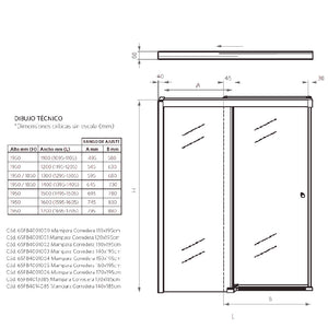 Corredera de 1 hoja fija y 1 hoja móvil con traslape de 4,5 cm.