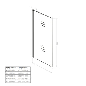 DESCRIPCIÓN Esta mampara fija, con vidrio templado de 6 mm, garantiza durabilidad y seguridad. Su diseño sin partes móviles minimiza el mantenimiento, ofreciendo una instalación sencilla y estable. El vidrio templado asegura resistencia, ideal para espacios que requieren una barrera eficaz y estética.
