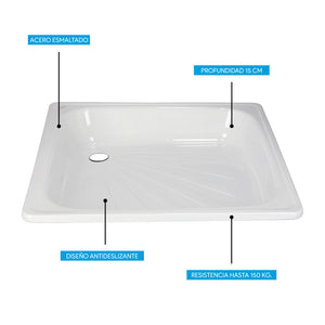 Fabricado en acero esmaltado blanco. Incorpora un borde perimetral