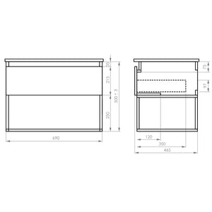 DESCRIPCIÓN Diseño sin manillas con superficies lisas. Guía corredera de acero inoxidable con sistema Cierre Suave para el cajón. Resistencia máximo 15 Kg.