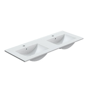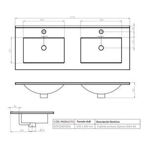 Mueble de baño suspendido con dos cajones, dos puertas y cubierta doble vanitorio.