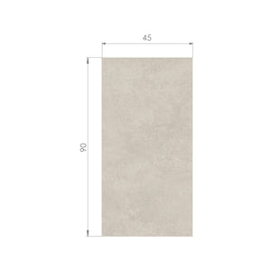 TIPOLOGÍA Porcelanato Rectificado SERIE Living Look Cementicio TERMINACIÓN Mate GRÁFICAS 4 caras FORMATO 45 x 90 cm ESPESOR 9,5 mm USO Piso y Muro ABSORCIÓN DE AGUA - 0,5 % TRÁFICO PEI 4 - Residencial Alto y Comercial Moderado RESISTENCIA AL DESLIZAMIENTO R9 UNIDADES POR CAJA 4 Palmetas M2 POR CAJA 1 ,62 m2 PESO POR CAJA 32,5 kg