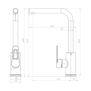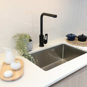 Cartucho cerámico con apertura en frío que permite ahorro de energía. La manilla cuenta con giro en 90° que permite regular la temperatura del agua.