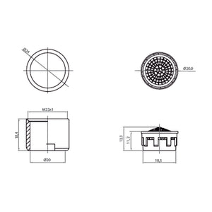 Carcasa: Latón. Aireador: Polimetro de Alta Resistencia (ABS).