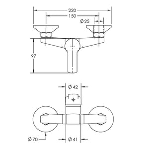 Manilla con giro en 90° que permite mezclar la temperatura del agua.