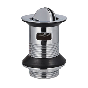 Desagüe para lavamanos con sistema de moneda, con rebalse, sin tubería ni tuerca de salida. La goma cónica tiene un diseño diferenciador, con una perforación roscada que brinda un sello seguro libre de fugas. Fabricado en acero inoxidable AISI 304, lo cual garantiza alta calidad, flujo e higiene.
