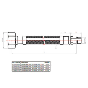 CARACTERÍSTICAS Flexible de agua vinilo para la unión o acople al suministro de agua entre los artefactos y redes. Genera uniones estables y herméticas que ayudarán a impedir fugas. Sus materiales de fabricación le otorgan flexibilidad y resistencia.