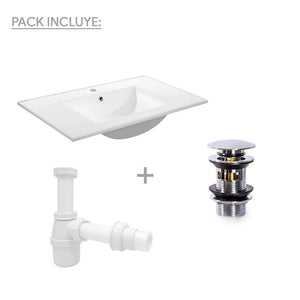 INCLUYE Cubierta Vanitorio Loza. Refuerzo metálico para instalación. Rebalse gran caudal. Desagüe Pop Up Lavatorio de 1. 1/4” con rebalse. Sifón para lavatorios. Posee un vaso de registro lo cual permite su limpieza.