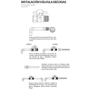 Válvula Decogas He-Hi 1/2 Iso 228-Iso 7 Con campana cromada Manilla con sistema de seguridad y campana terminación cromo Fabricado en Latón Normalizado O-ring Parker Diámetro nominal 10mm Presión de Trabajo 500kpa Rango de ajuste de la válvula de 20 a 40 mm